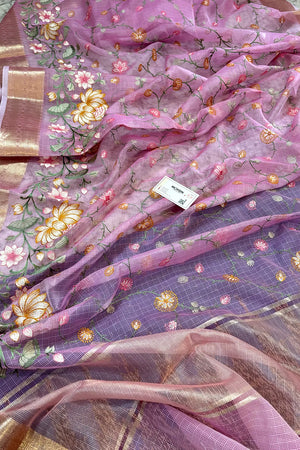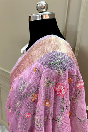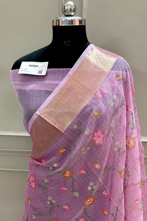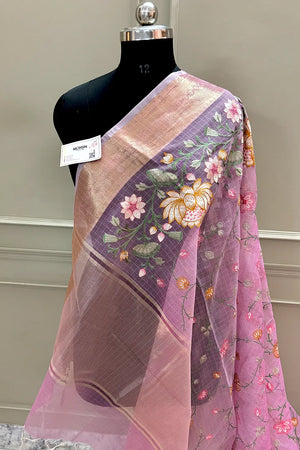 Baby Pink Embordiery Net Silk Banarasi Saree