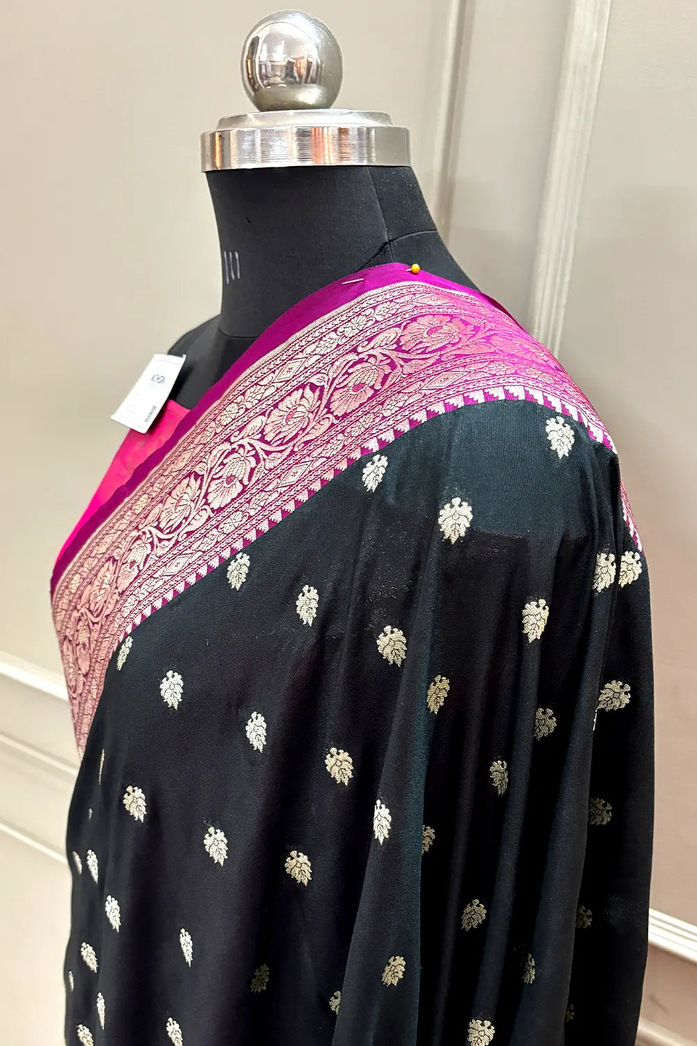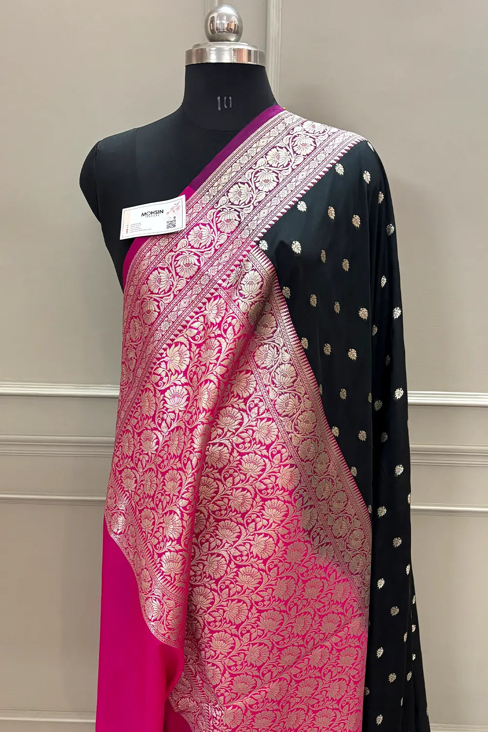Black and Pink Rudraksha Buti Katan Silk Banarasi Saree