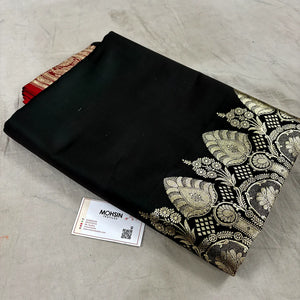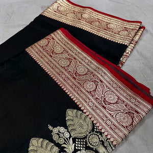 Black and Red Royal Plain Katan Satin Silk Banarasi Saree