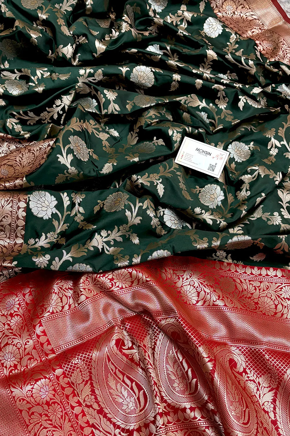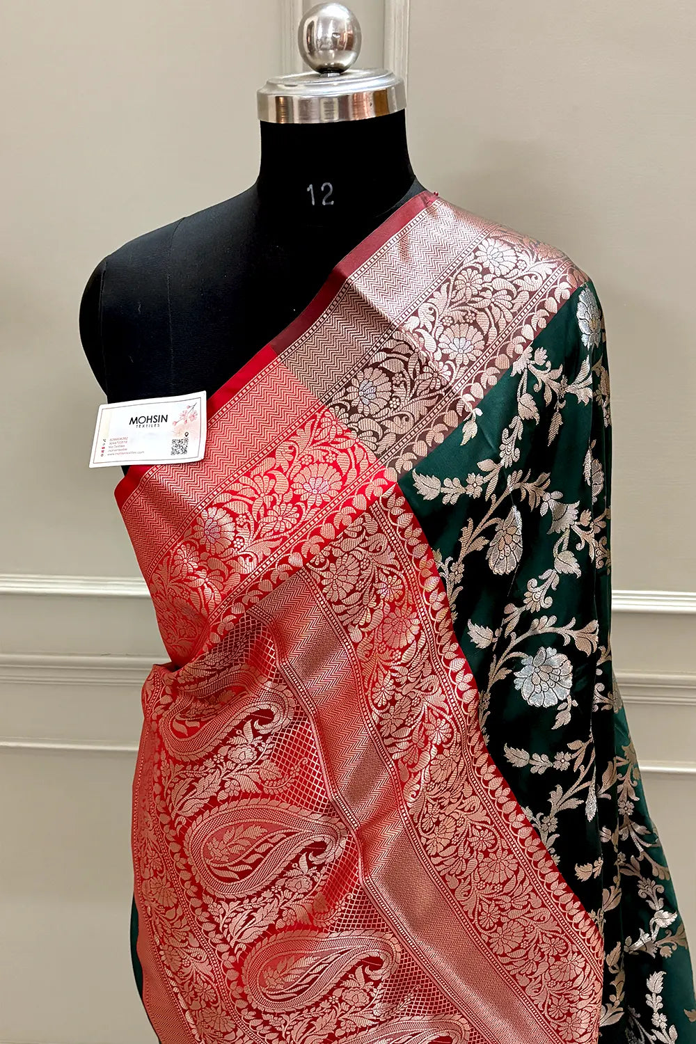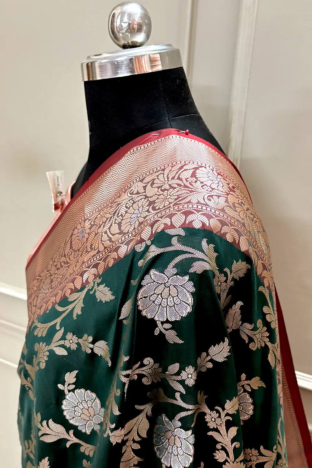 Bottle Green and Red Golden Zari Banarasi Silk Saree