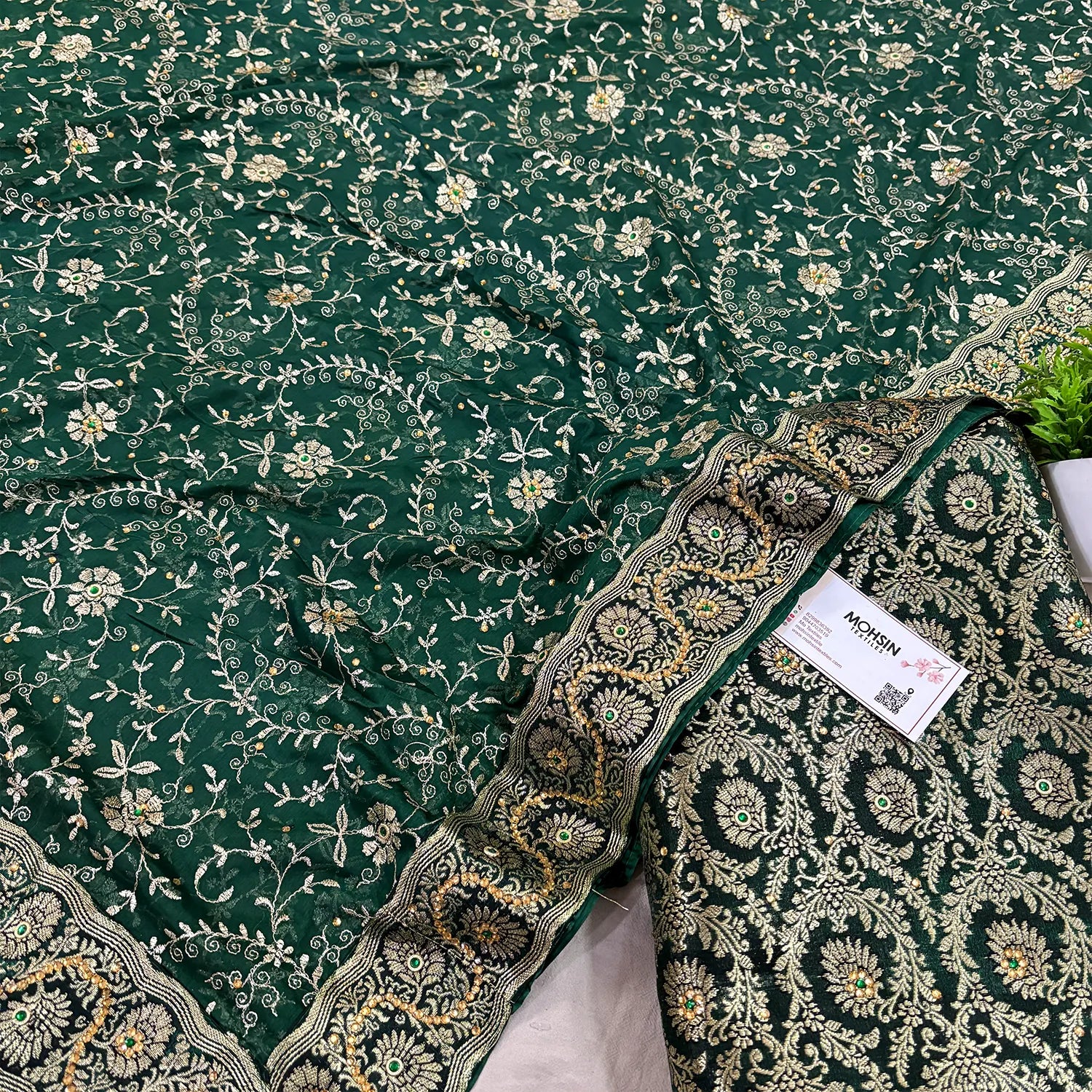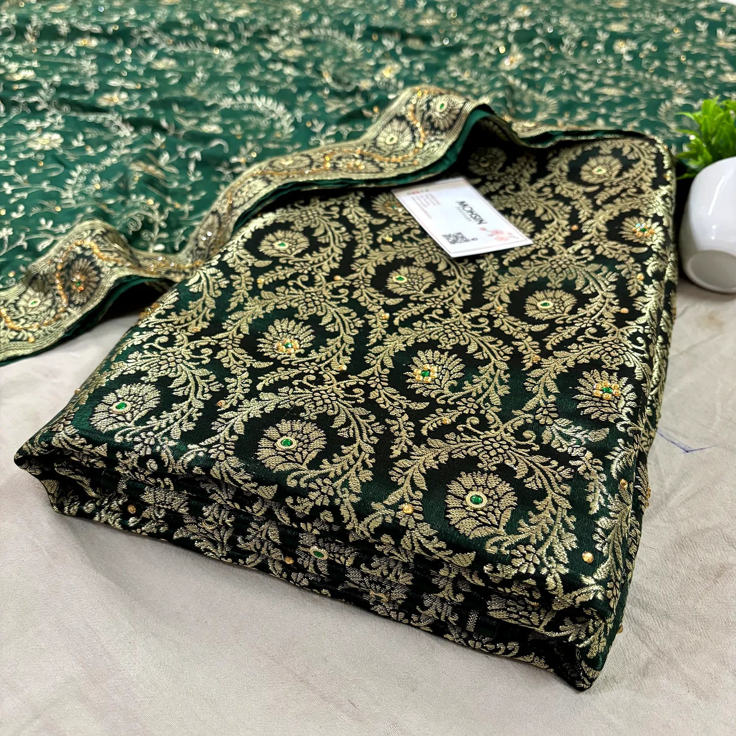 Bottle Green Chiragha Jaal Stone Work Kimkhab Silk Banarasi Gharara