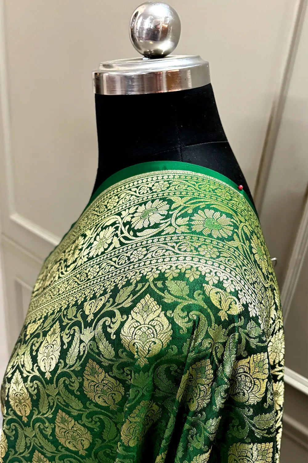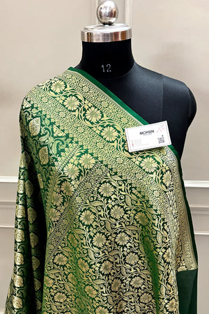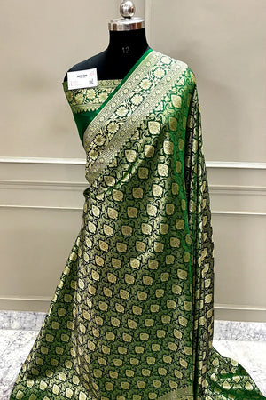 Bottle Green Rajvada Buti Katan Silk Banarasi Saree