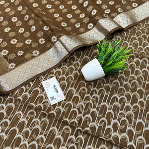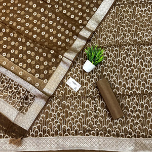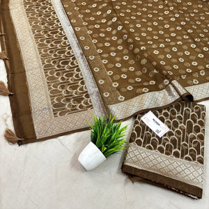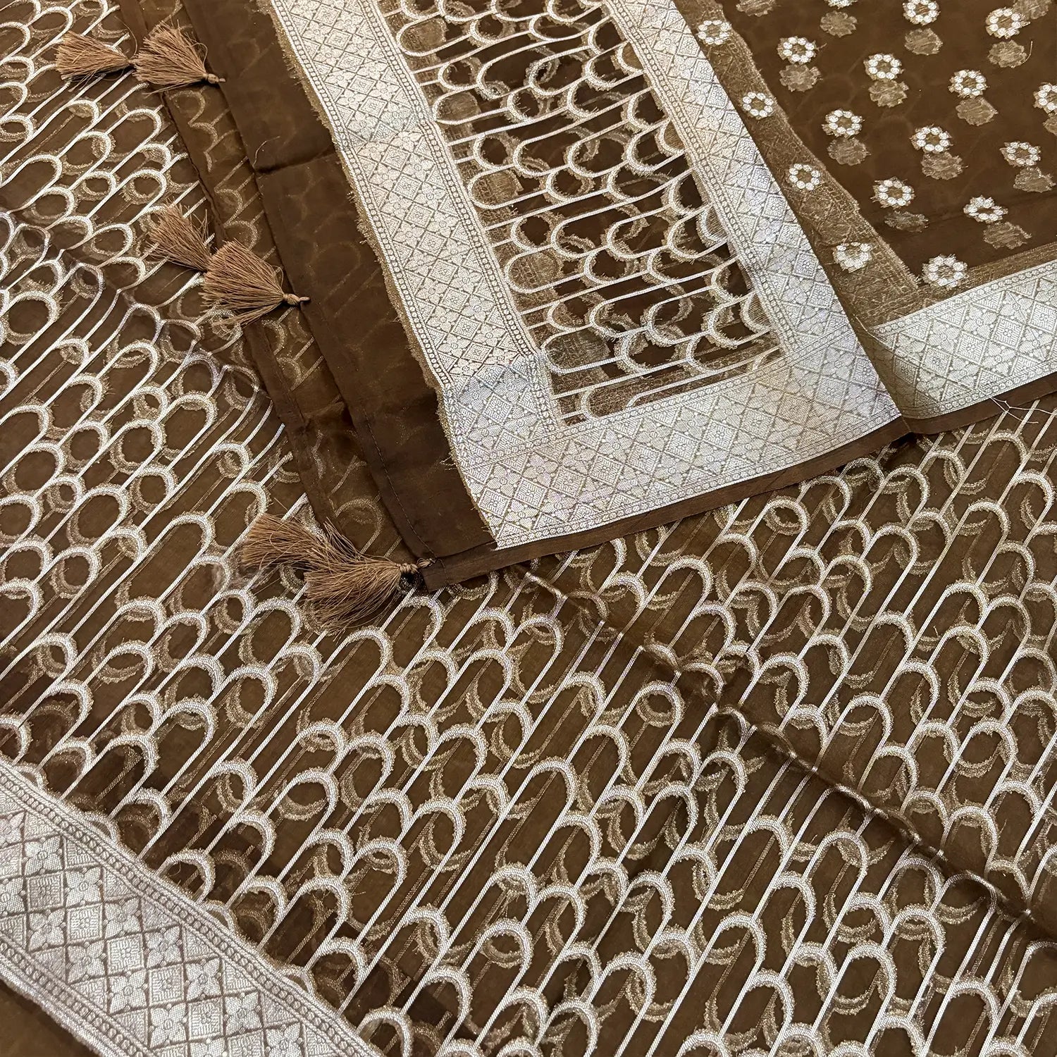 Brown Cactus Jaal Organza Silk Banarasi Suit