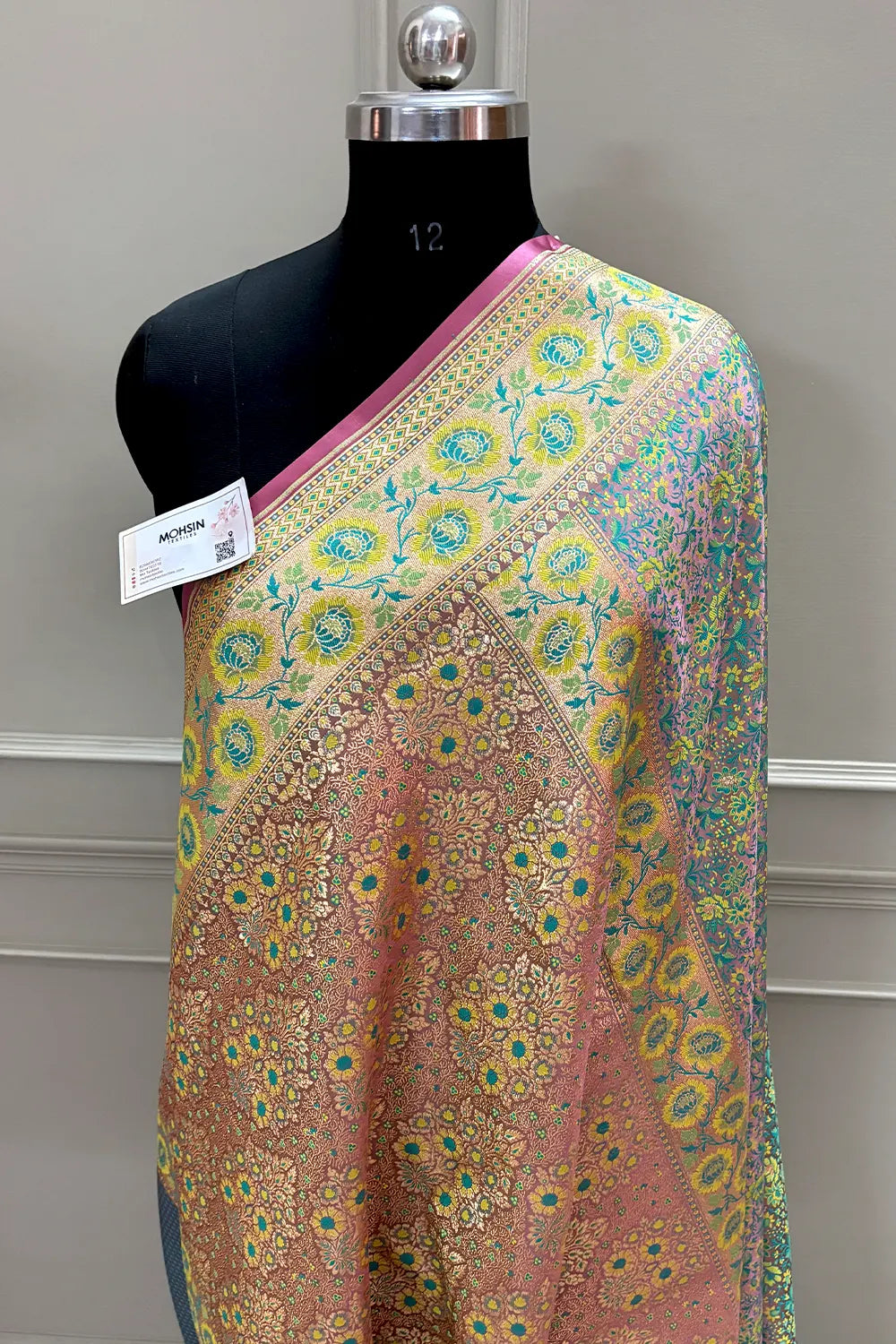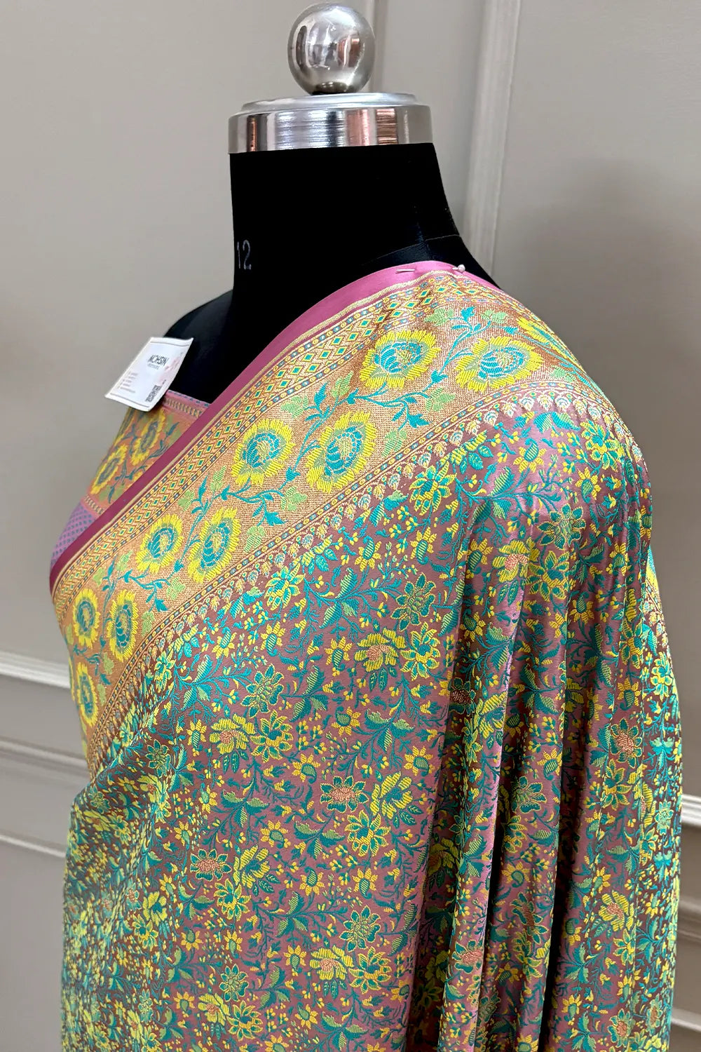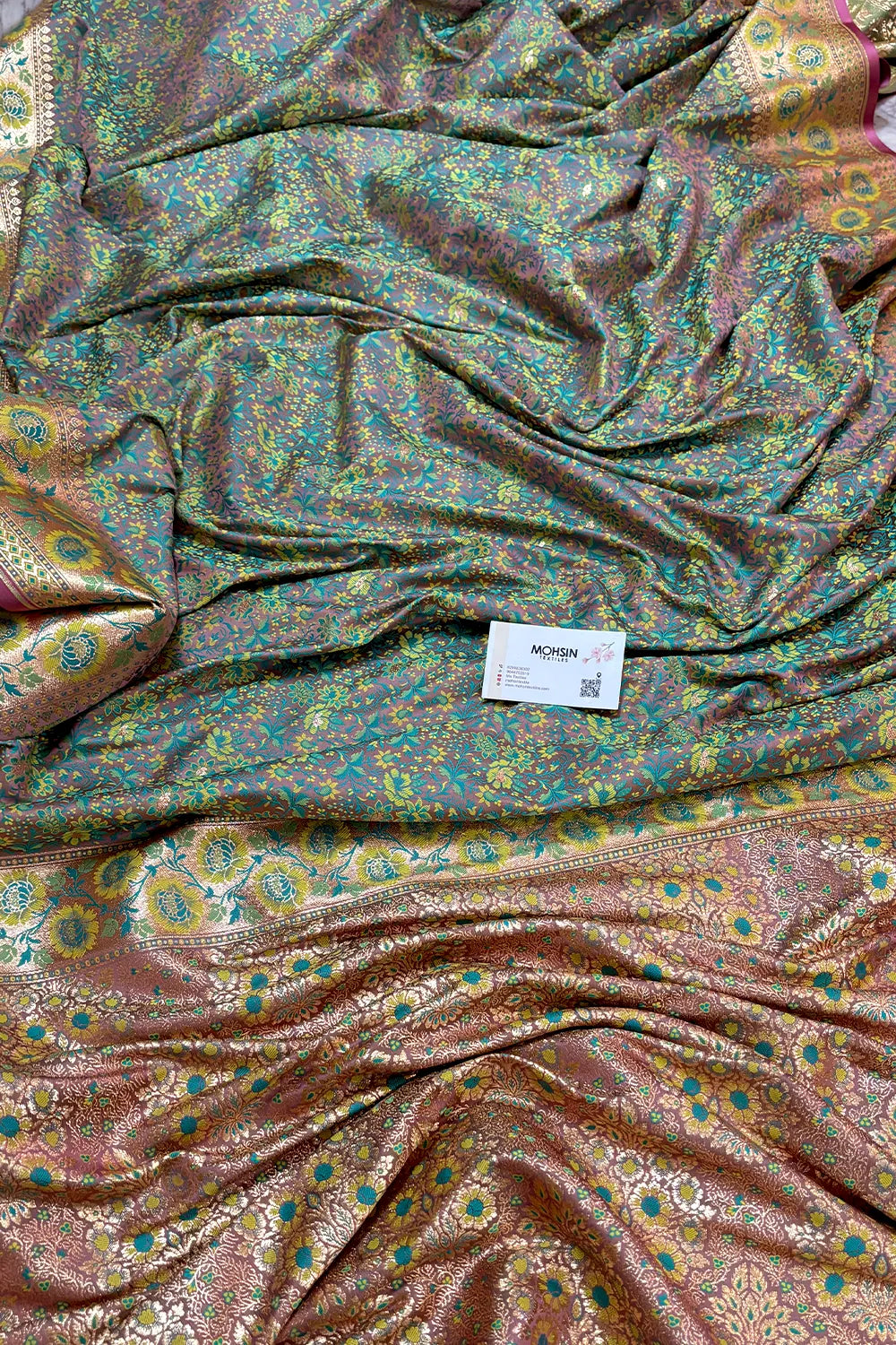 Jamuni and Mint Jungli Jaal Katan Silk Banarasi Saree
