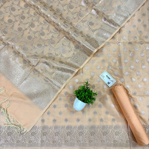 Light Peach Kiyari Buti Satin Silk Banarasi Suit