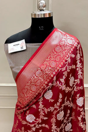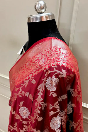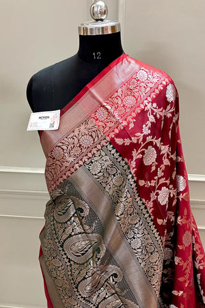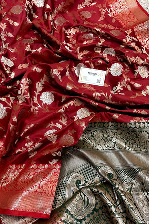 Home Maroon and Bottle Green Golden Zari Banarasi Silk Saree