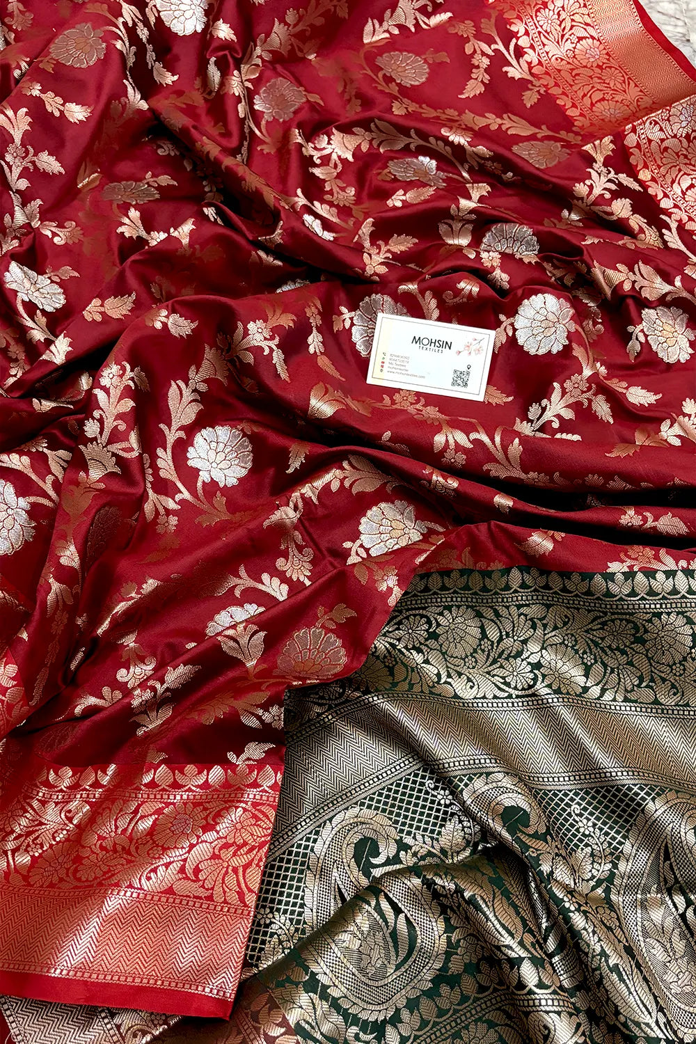 Maroon and Bottle Green Golden Zari Banarasi Silk Saree