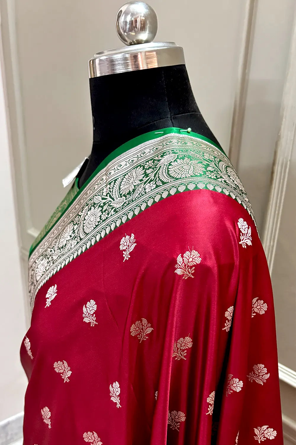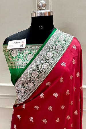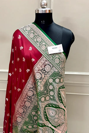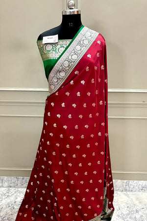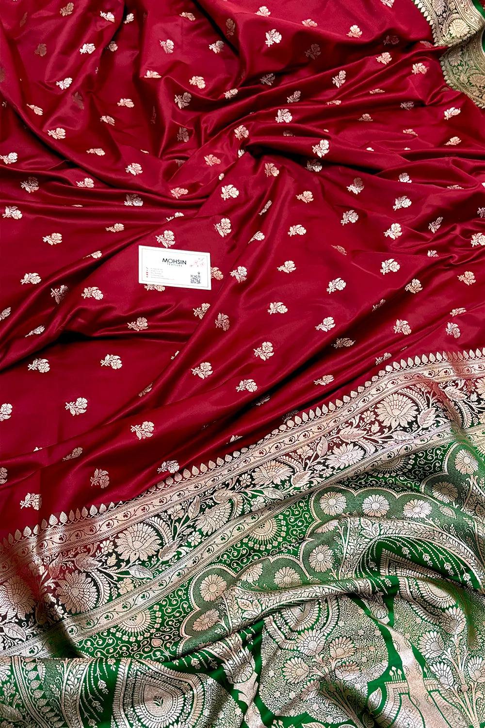Maroon and Green Chaman Buti Katan Silk Banarasi Saree