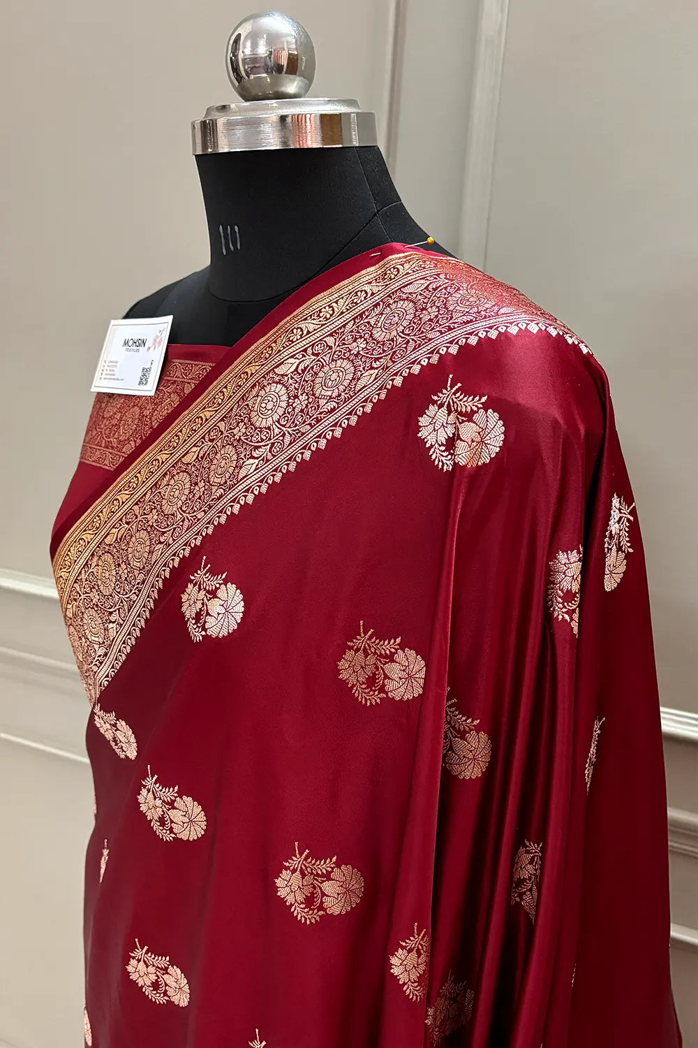 Maroon Golden Flower Katan Silk Banarasi Saree