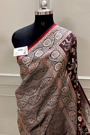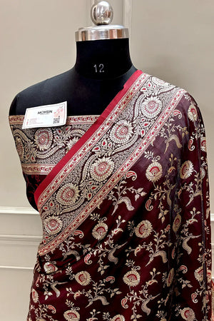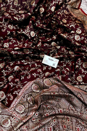 Maroon Golden Zari Katan Silk Banarasi Saree