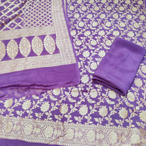 Mauve Pure Khaddi Georgette Silk Banarasi Suit