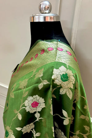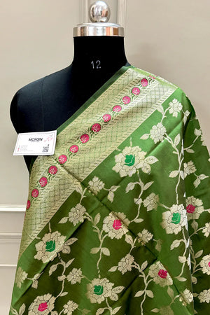 Mehendi Meenakari Satin Silk Banarasi Dupatta