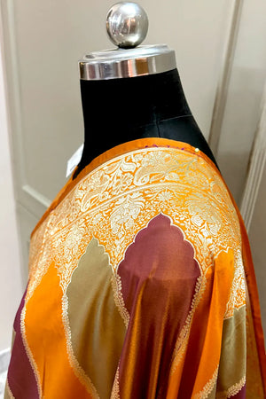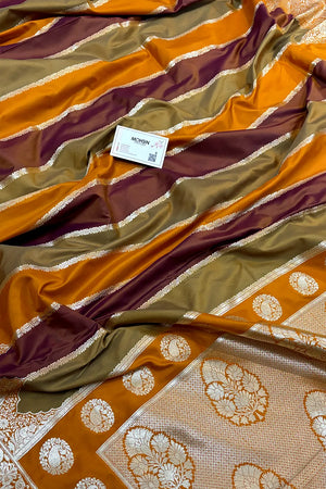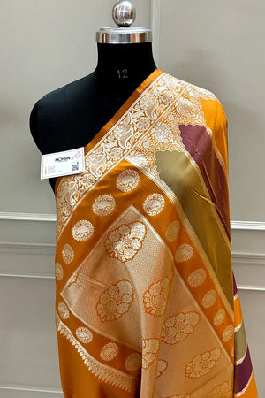 Mustard Orange Rangkaat Katan Silk Banarasi Sare