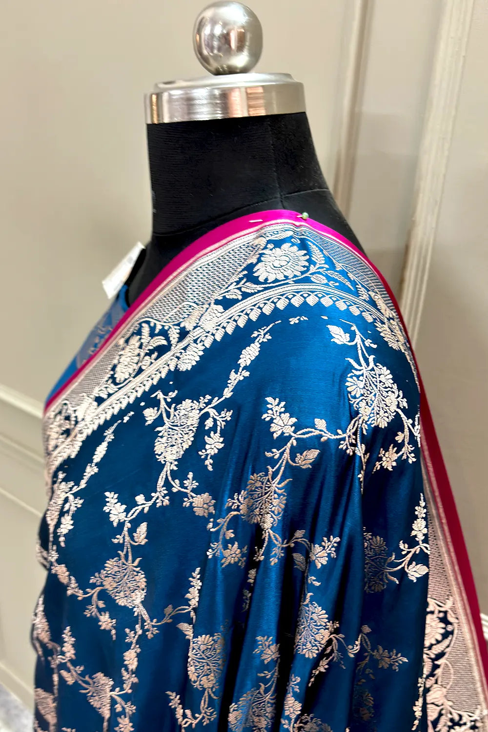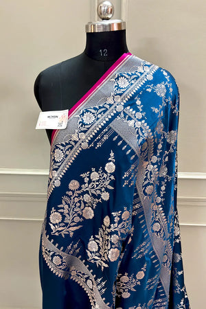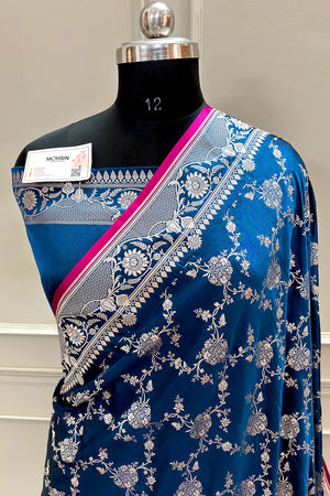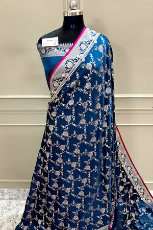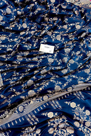 Navy Blue Jhanjaal Katan Silk Banarasi Saree