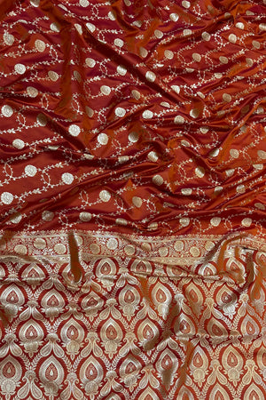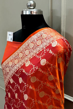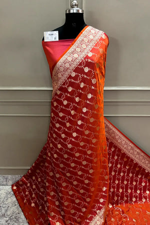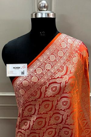 Orange Pink Ropeway Jaal Katan Mashru Silk Banarasi Saree