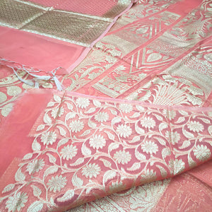 Peach 24 Kalli Organza Silk Banarasi Lahenga