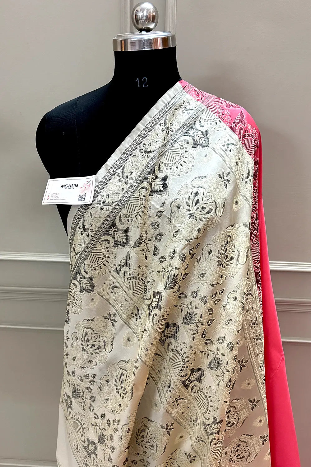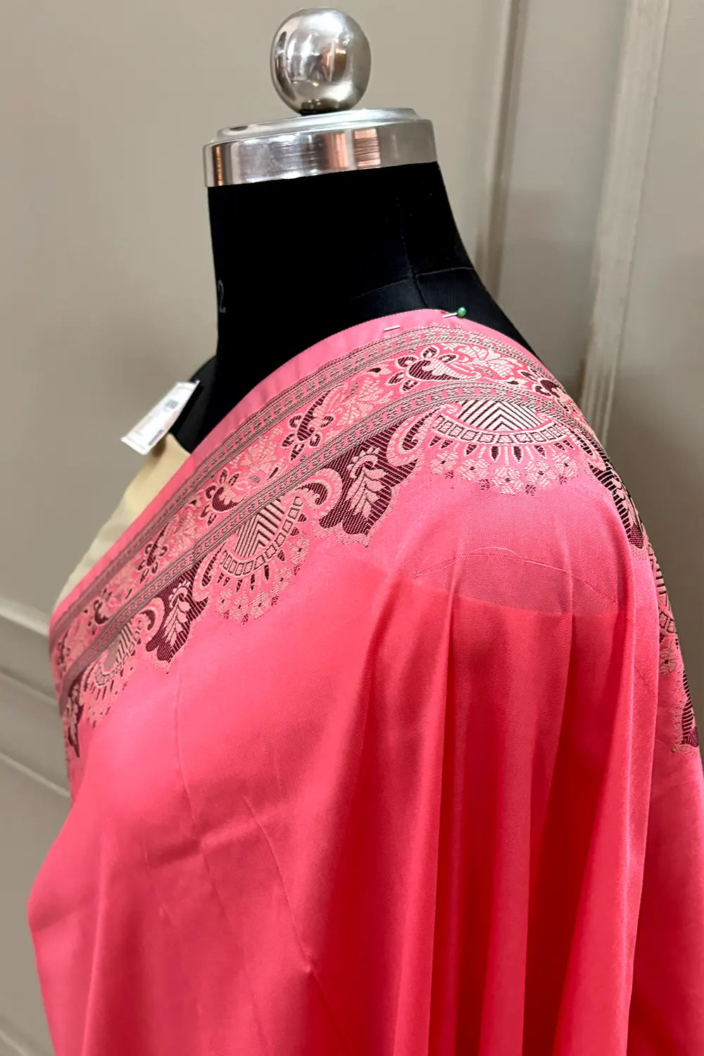 Peach and Beige Plain Resham Silk Banarasi Saree