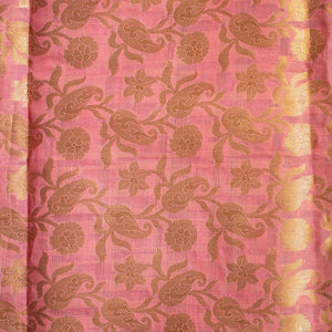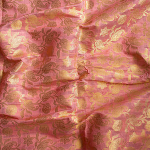 Peach Zari Woven Banarasi Musrize Silk Fabric