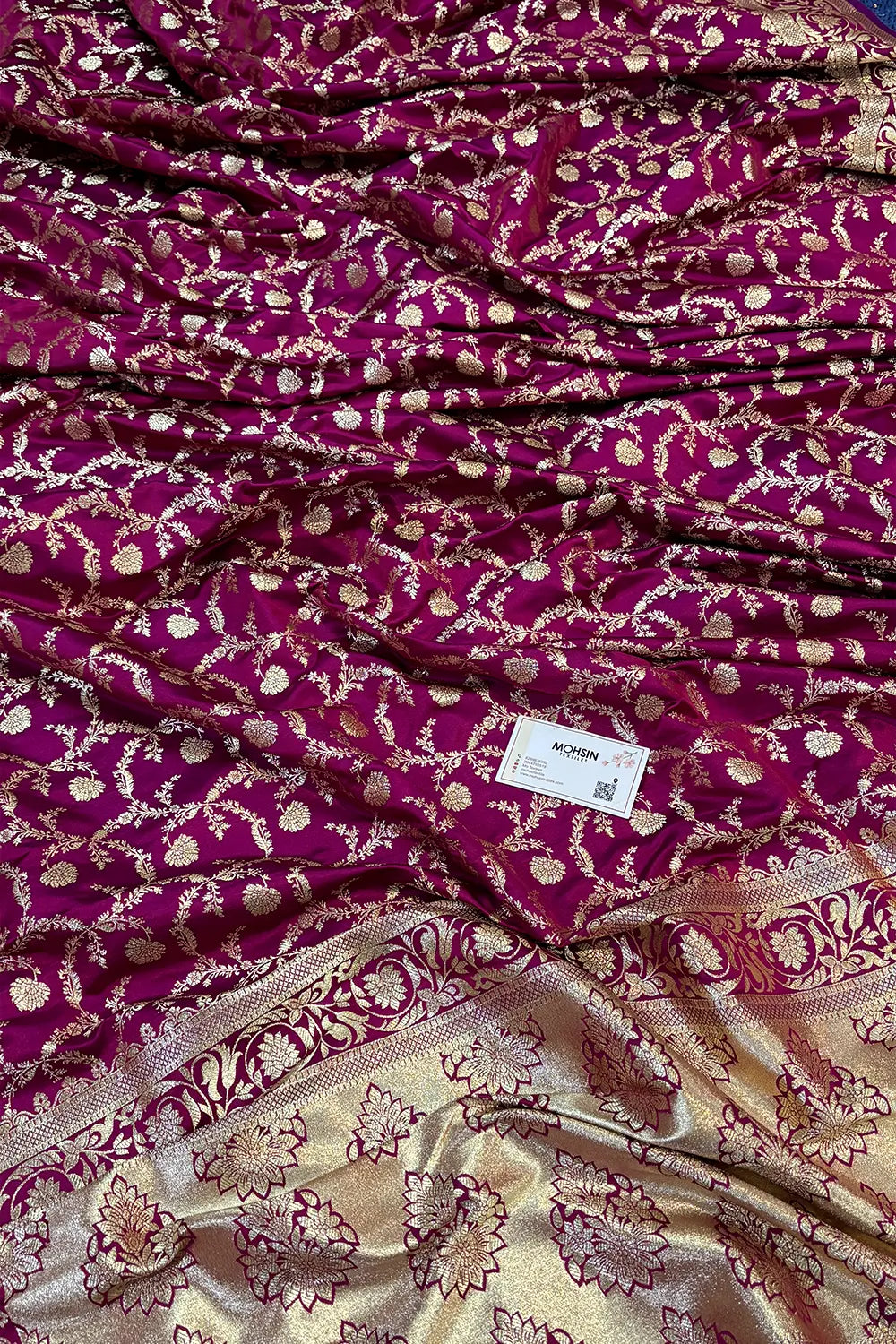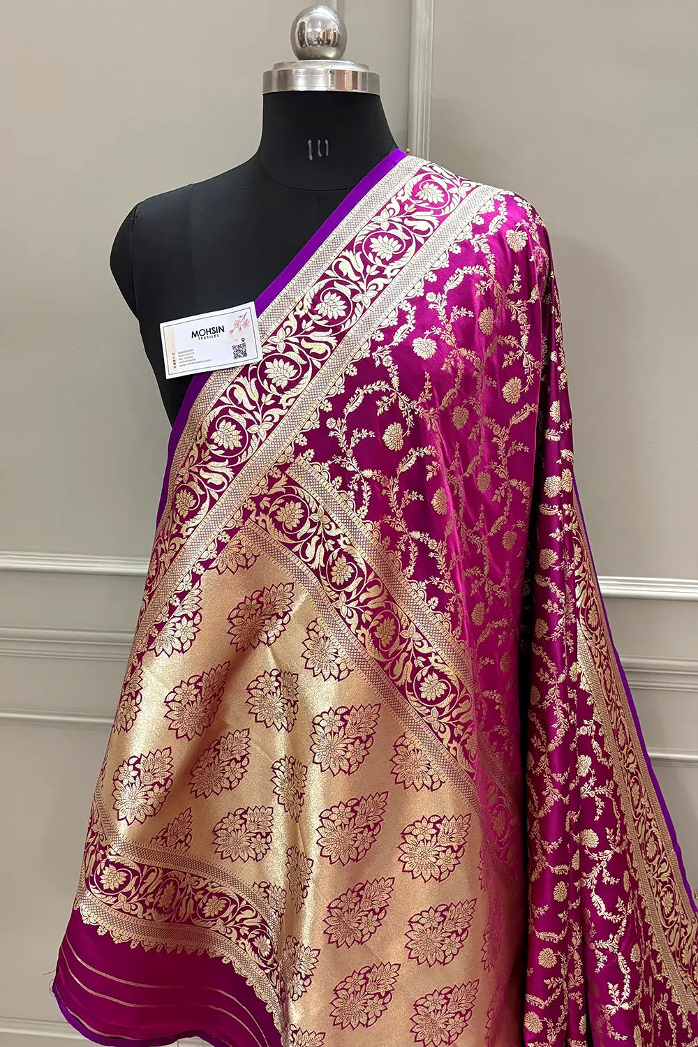 Purple Chandramukhi Jaal Katan Silk Banarasi Saree