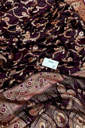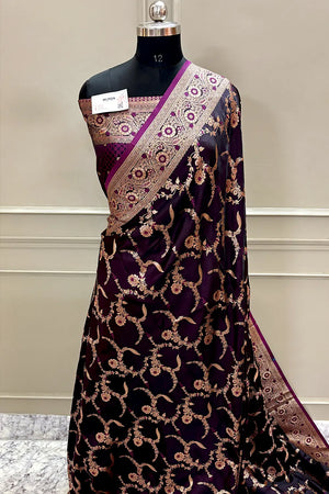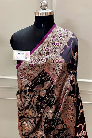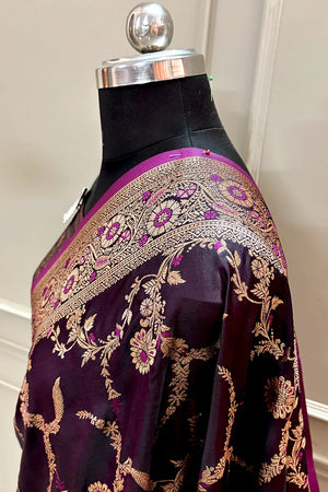 Home Purple Golden Zari Katan Silk Banarasi Saree