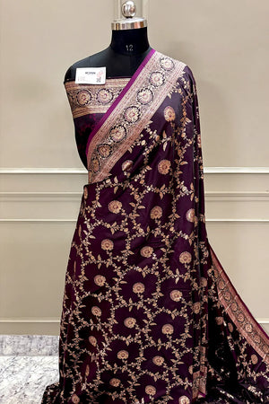 Home Purple Golden Zari Katan Silk Banarasi Saree