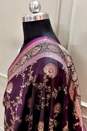 Purple Golden Zari Katan Silk Banarasi Saree