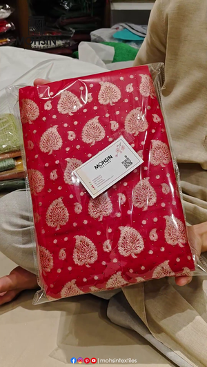 This Red Patta Siroski Stone Banarasi Suit features intricate details and high-quality Georgette Silk fabric. The Mehendi Patta design and Siroski Stone embellishments add a touch of traditional elegance. Perfect for special occasions or formal events, this suit will make you look and feel confident.