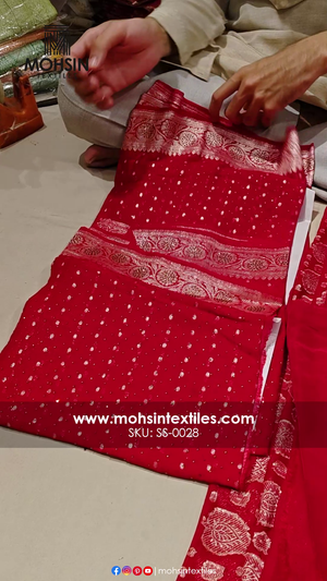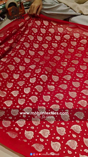 Red Patta Siroski Stone Georgette Silk Banarasi Suit