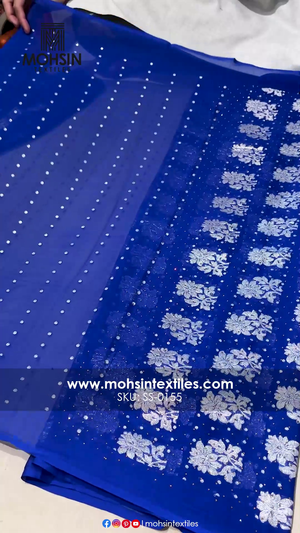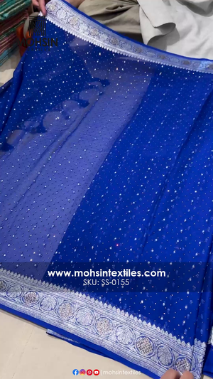Royal Blue Swarovski Stone Georgette Silk Banarasi Suit