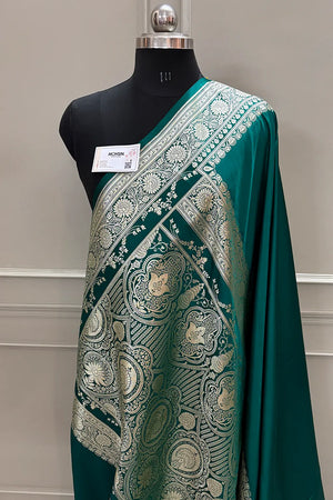Teal Plain Golden Zari Katan Silk Banarasi Saree