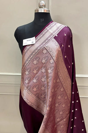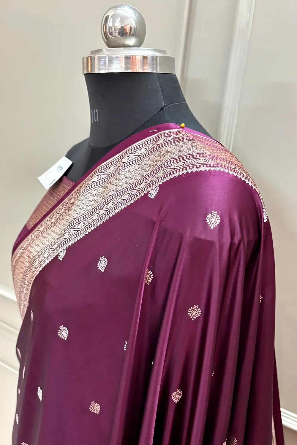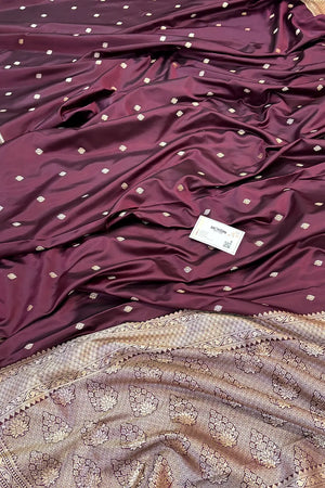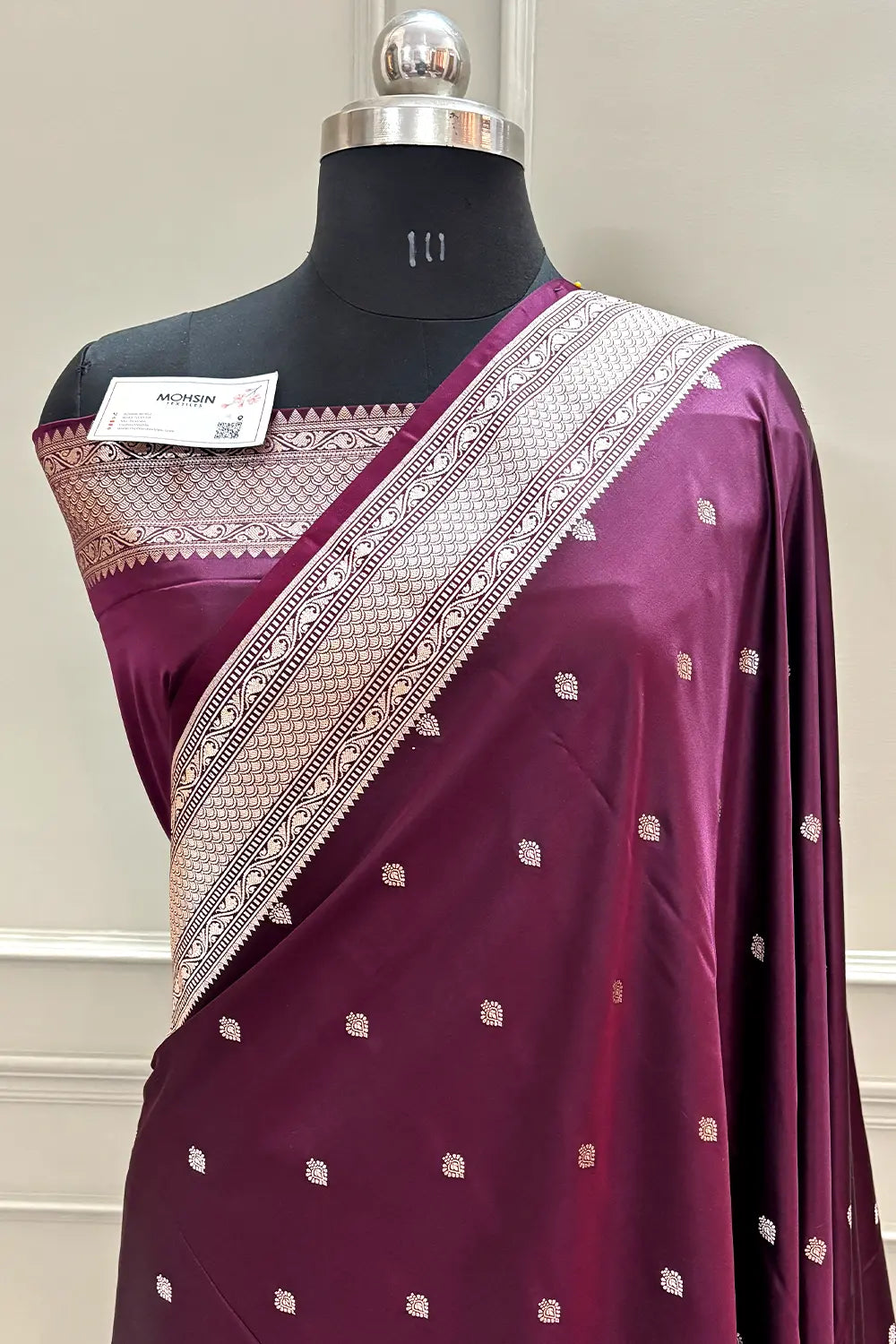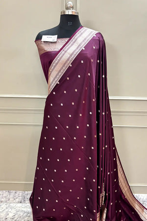 Wine Wazir Buti Katan Silk Banarasi Saree
