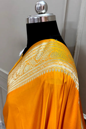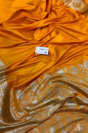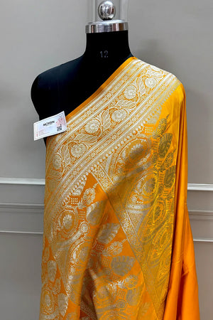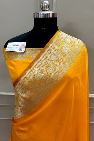 Yellow Royal Plain Katan Silk Banarasi Saree